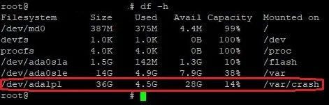 1: An ADC VPX with release 13.1 build 21.x and newer, hosted on a hypervisor can be assigned additional disk space. This disk space will appear as another partition again under /var/crash/. If you add additional disk space while the VPX is powered on, it will require a reboot before it is available and ready to be utilized.