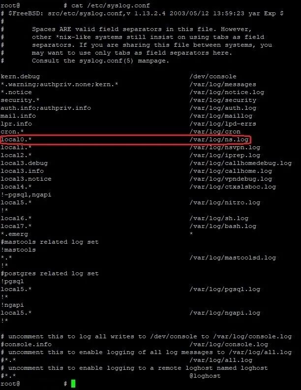 Example of the “/etc/syslog.conf” & “/etc/newsyslog.conf” files to the /nsconfig/ folder