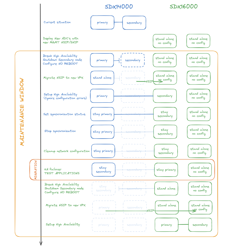Schedule and execute the cutover by failing over the VPX and activating the new SDX appliance.Test Thoroughly and Rollback if Needed